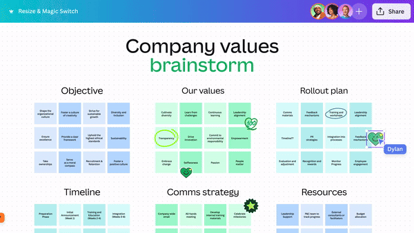 Resize and Magic Switch - Auto convert existing content into any format. Pretty cool because you could instantly convert a brainstorming session on a whiteboard into a formal document. You can also go from presentation to marketing video script.