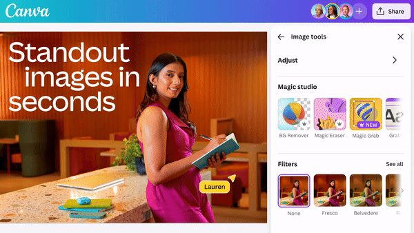 Magic Grab - To select any element within your photo to move, remove, or replace it. Works great if you want to fix up your images without redoing the whole photoshoot or require someone with Adobe/tech skills to edit.