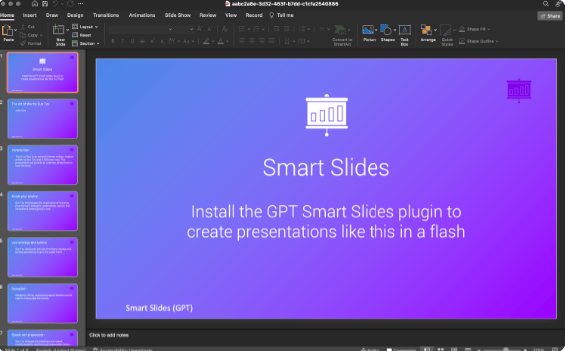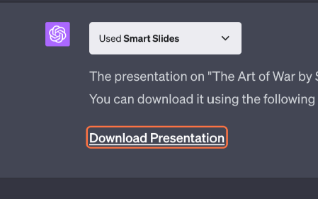 Enter Prompt eg "Create 7 slide Powerpoint presentation about "The Art of War"