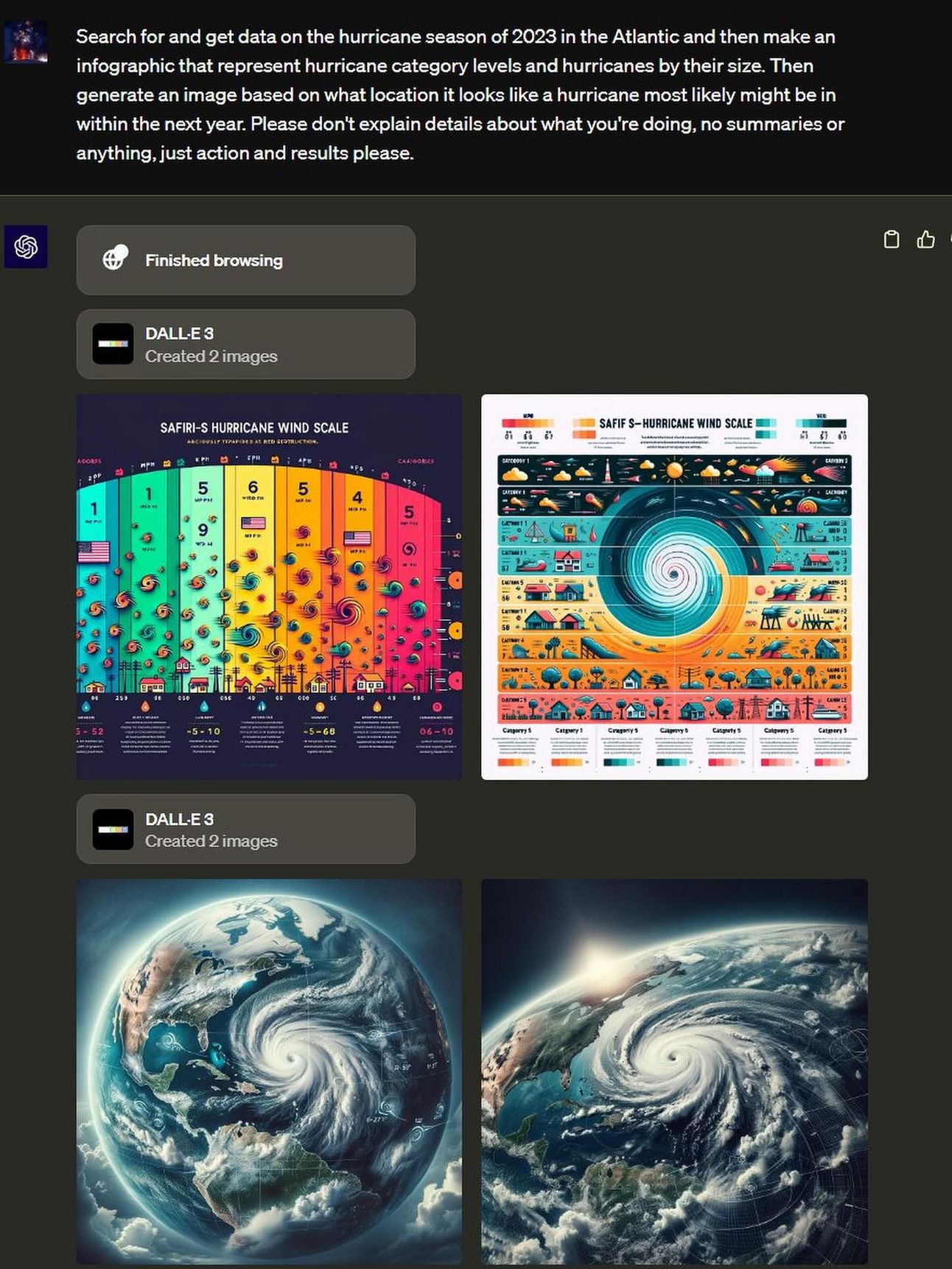 Browse the web for hurricane data + create infographic based on data + create image of what this would look like
