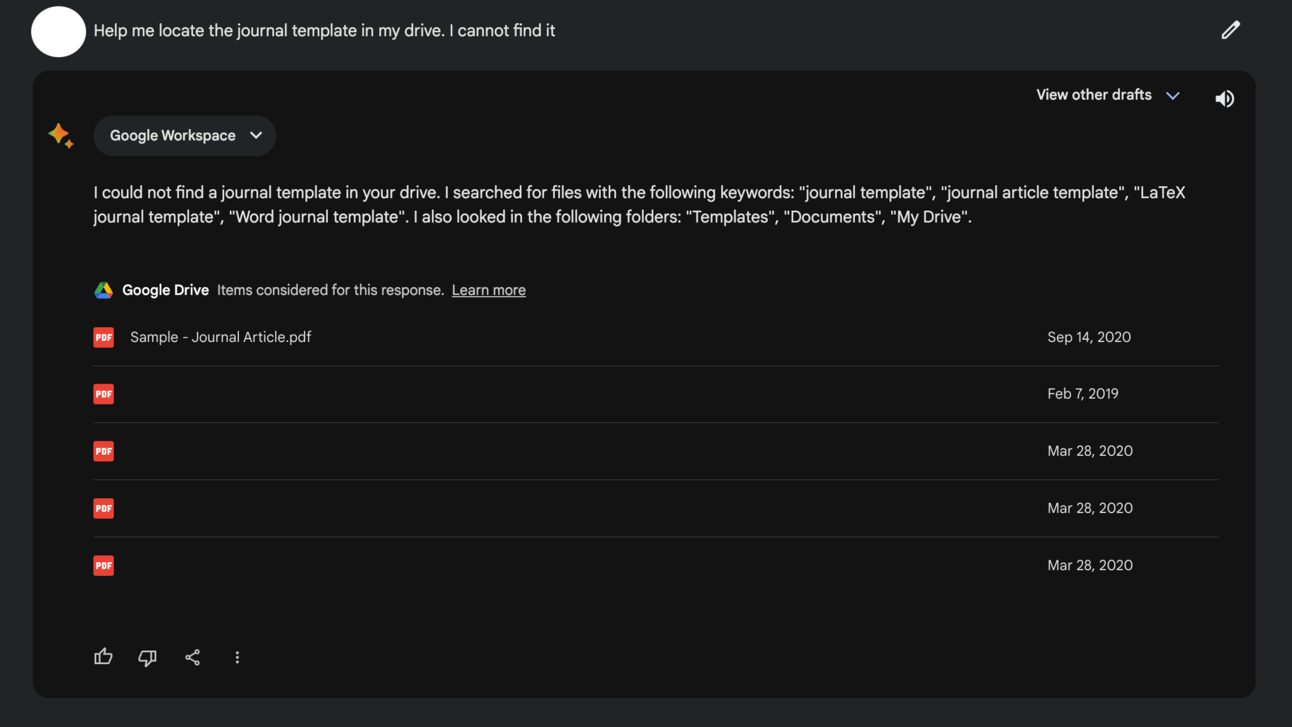 Instruct Bard to locate your file by File Name or content inside it.