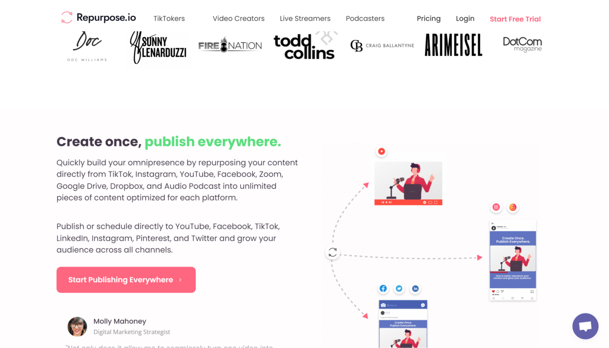 Create 1 video and automatically publish it directly onto 6 different social media platforms WITHOUT the watermark. I love it because I don’t need to manually remove the watermark AND it automatically backs up your video into Google Drive/Dropbox incase you ever lose your account (knock on wood).