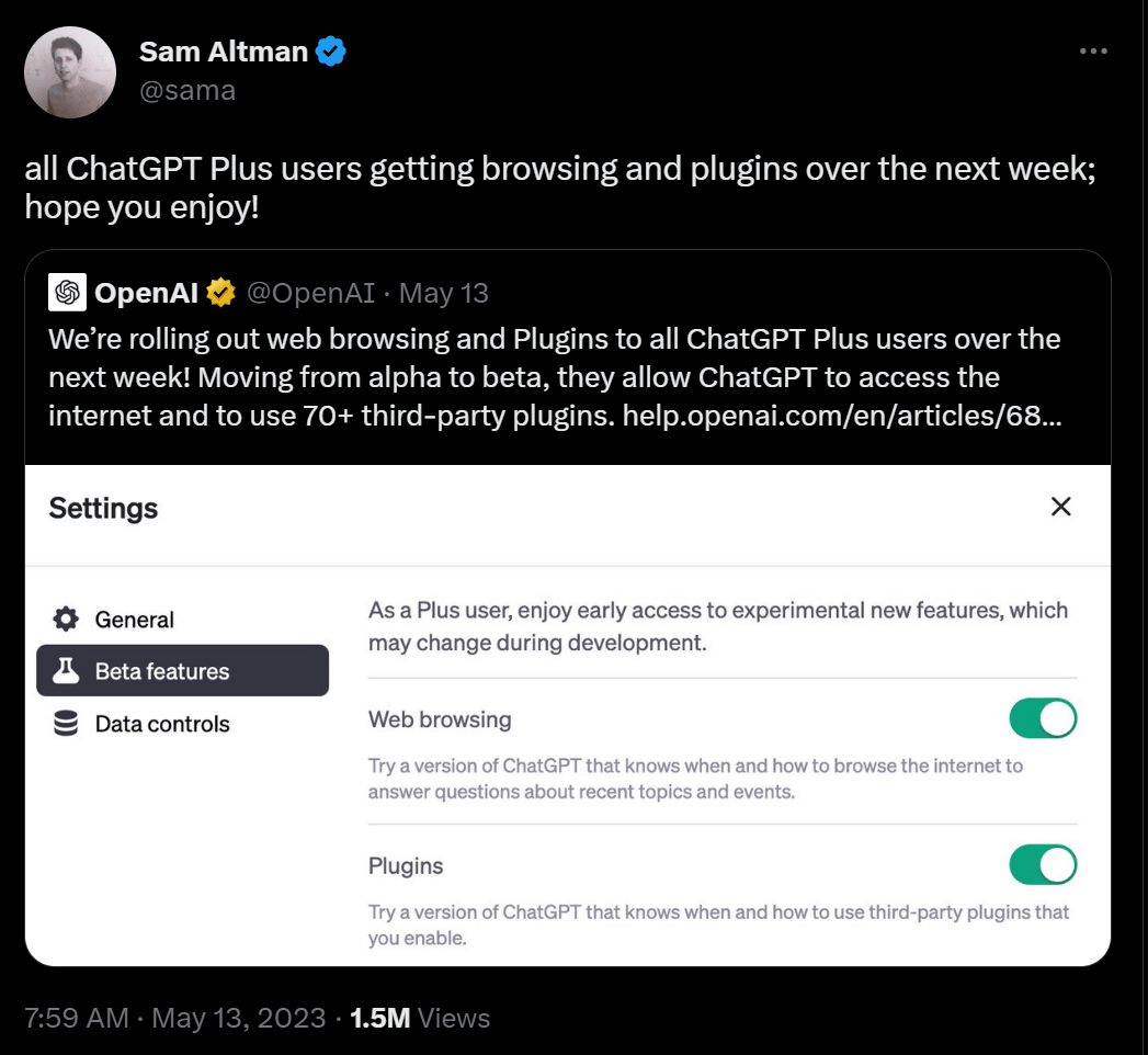 OMG! What everyone has been waiting for - ChatGPT plugins! It has finally arrived this week. These 70+ plugins allow you to do things like: